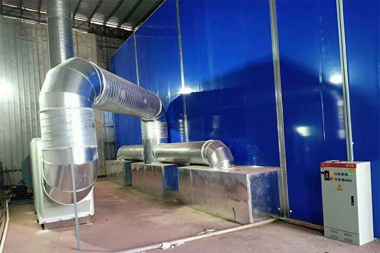 2.2、喷漆室采用上送风侧排风玻纤地棉漆雾处理方式的结构形式。
