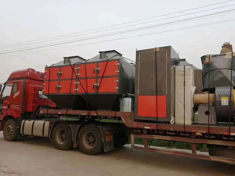 2.2、风量大、环保要求比较高的企业,大多采用以下废气处理方案。集气罩——风管——过滤器——活性炭吸附脱附催化燃烧装置——离心风机——达标排放