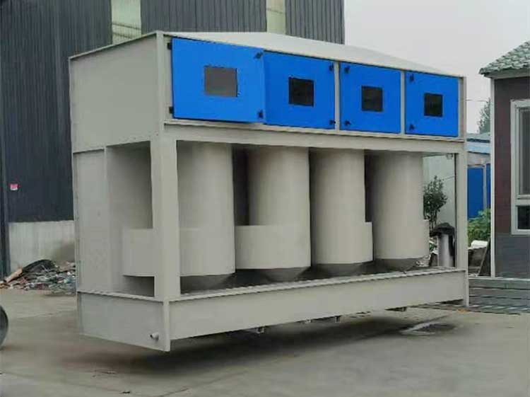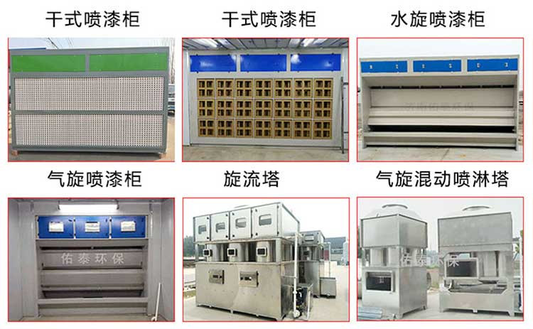 1、气旋式喷漆水帘柜简称气旋水帘柜,气旋喷漆柜。该设备作业时,粉尘或废气在负压风机牵引力的作用下,喷漆喷胶产生一部分乳化性废气颗粒随水帘落到水池中,大部分废料进入高速旋流导轨装置,漆雾、旋风与水在高速旋转的进行气液乳化反应。气动混流装置的高速运转,使得漆雾与旋转液体充分混合,在离心力的作用下达到漆液分离。气旋桶内部采用水泵循环给水,由安装在隔水层底部的螺旋喷嘴喷出来,漆雾分离出来的粉尘颗粒物下沉到水箱底部,分离后的气体进入环保填充料隔水层,然后进入后段的废气处理设备。