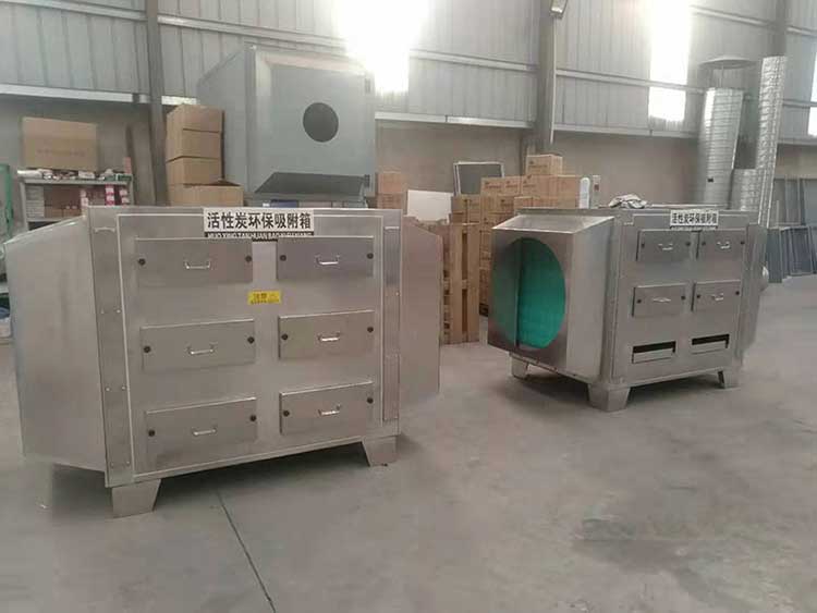 一、蜂窝活性炭吸附箱主要由吸附箱体,活性炭过滤网,蜂窝活性炭组成,外形做成抽屉式,活性炭吸附箱内部气流以迷宫式运行。能够很好的吸附有机废气。箱体一般使用镀锌板,碳钢板喷塑而成,外表美观,结实耐用。