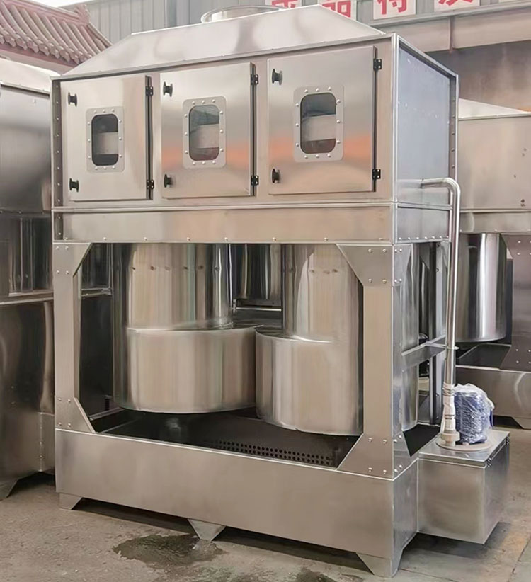 6万风量长5.9米宽1.5米高2.85米,4个气旋筒,每个直径1000mm,1台4千瓦水泵,面板1.5厚201不锈钢制作,水池2.0厚201不锈钢制作。