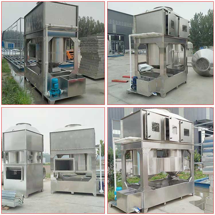 五、通过以上对比可以看出喷淋塔与气旋喷淋塔是不一样的产品,气旋喷淋塔与普通喷淋塔相比,多了气旋混动除尘除废气装置,处理废气效果要好一些,当然价格也贵一些。另外普通喷淋塔一般使用PP,不锈钢,玻璃钢等材质制作。气旋喷淋塔一般是用201不锈钢或者304不锈钢制作。