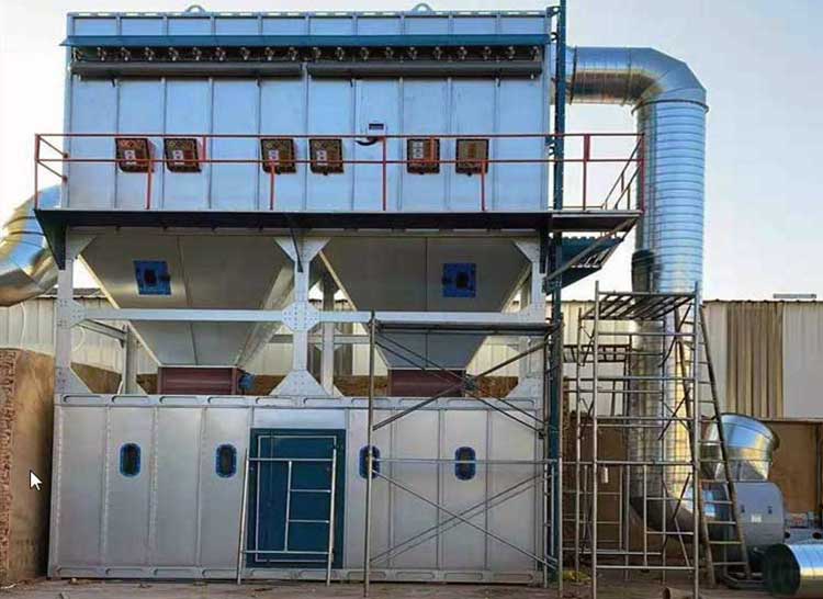 除尘方案由以下部分构成吸尘罩,吸气臂(气缸控制吸尘罩伸缩,不影响车间行车吊装工件),除雾器,布袋除尘器,风机管道等部分构成。